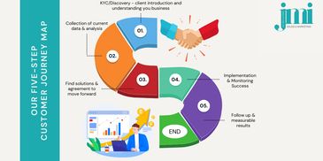Our five-step customer journey is designed to highlight key stages of our process, from onboarding to delivering the desired measurable results. This approach allows us to pause and review at each stage, ensuring that we remain aligned with our clients and maintain clear communication and teamwork throughout the entire process.
